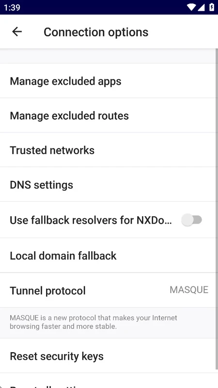 Die App nutzt mehrere moderne und optimierte Protokolle für eine hervorragende Verbindung zwischen Geräten und dem Internet und sorgt so für eine effizientere und schnellere Internetverbindung. Dank moderner Technologie laden Webseiten und Anwendungen mit geringer Latenzzeit. Eine der besten Lösungen für Nutzer mit begrenztem mobilem Datenvolumen oder einer schwachen Internetverbindung.